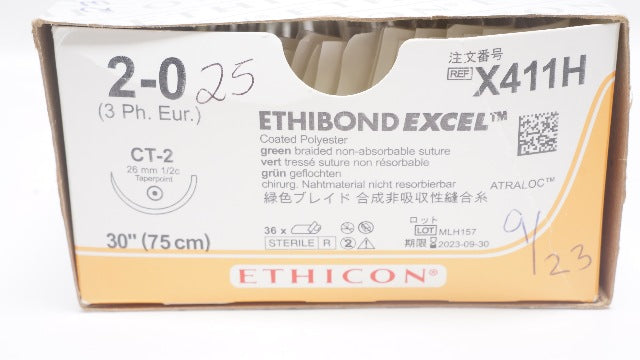 Ethicon X411H 2-0 Ethibond Excel CT-2 26mm 1/2c Taper 30inch (x) - Box of 23