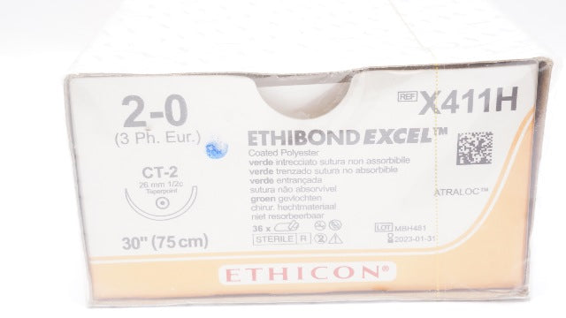 Ethicon X411H 2-0 Ethibond Excel CT-2 26mm 1/2c Taper 30inch (x) - Box of 36