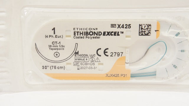 - Ethicon X425 1 ETHIBOND EXCEL Polyester Stre CT-1 36mm 1/2c Taperpoint 30inch