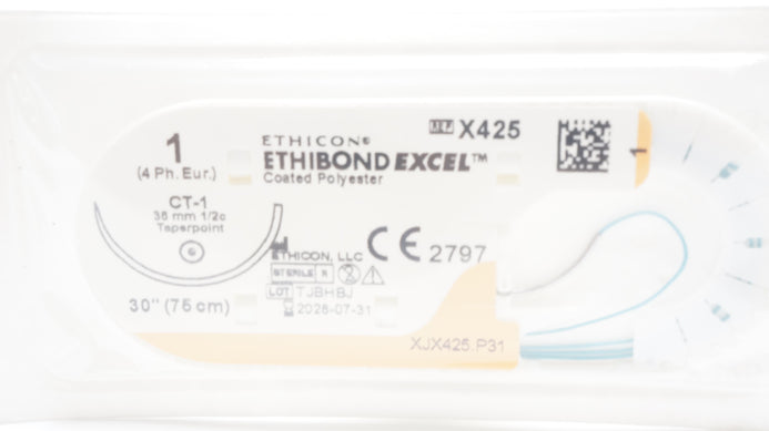 - Ethicon X425 1 ETHIBOND EXCEL Polyester Stre CT-1 36mm 1/2c Taperpoint 30inch