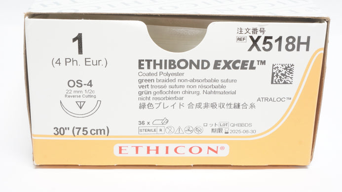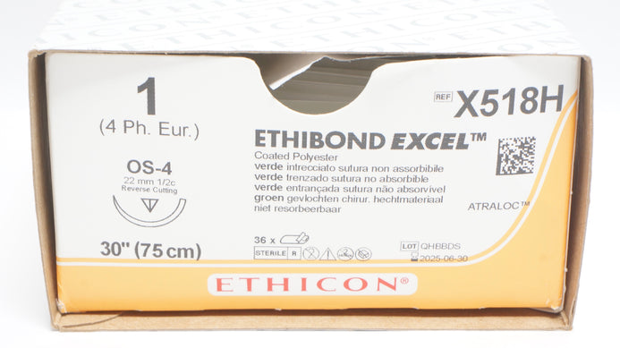 - Ethicon X518H 1 Ethibond Stre OS-4 22mm 1/2c Reverse Cutting,30in - Box of 31(x)