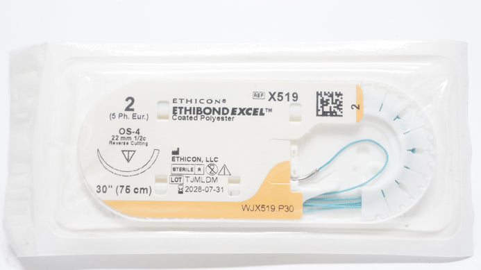 - Ethicon X519 2 Ethibond Excel Stre OS-4 22mm 1/2c Reverse Cutting, 30inch