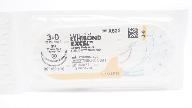 - Ethicon X522 3-0 Ethibond Excel Stre SH 26mm 1/2c Taperpoint, 36inch (x)