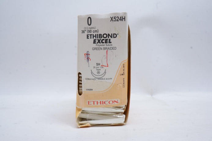 Ethicon X524H 0 ETHIBOND EXCEL, SH, 26mm 1/2c Taper, 36inch (x) - Box of 36