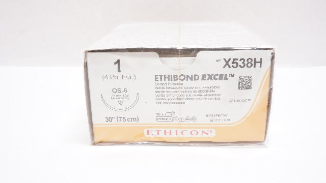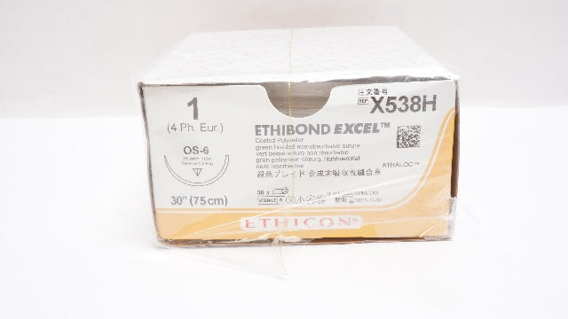 Ethicon X538H 1 Ethibond Excel Coated Polyester Green Braided Non-Absorbable Suture OS-6 36mm 1/2c Reverse Cutting 30inch