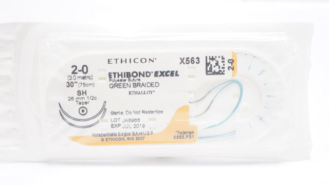 - Ethicon X563 2-0 ETHIBOND EXCEL Polyester Stre SH 1/2c 26mm Taper 30inch (x)