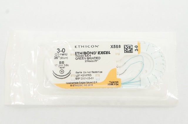 - Ethicon X588 3-0 Ethibond Excel Polyester Stre BB, 17mm 3/8c Taper, 36In (x)