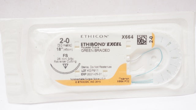 - Ethicon X664 2-0 ETHIBOND EXCEL Stre FS 26mm 3/8c Reverse Cutting, 18inch (x)