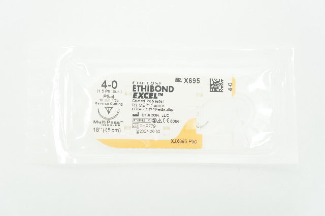 Ethicon X695 Ethibond Excel White Braided Non-absorbable Suture Coated Polyester 4-0, 18in, PS-4 Reverse Cutting 16mm