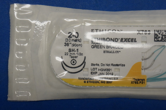 - Ethicon X763 2-0 ETHIBOND EXCEL, SH-1 22mm 1/2c Taper, Green Braided, 36