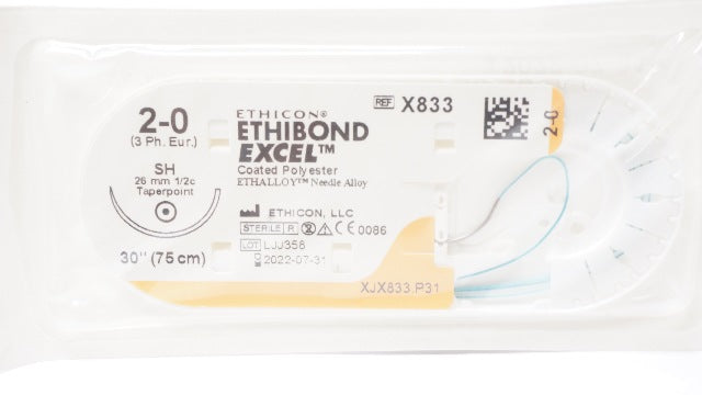 - Ethicon X833 2-0 ETHIBOND EXCEL Polyester SH 26mm 1/2c Taper, 30inch (x)