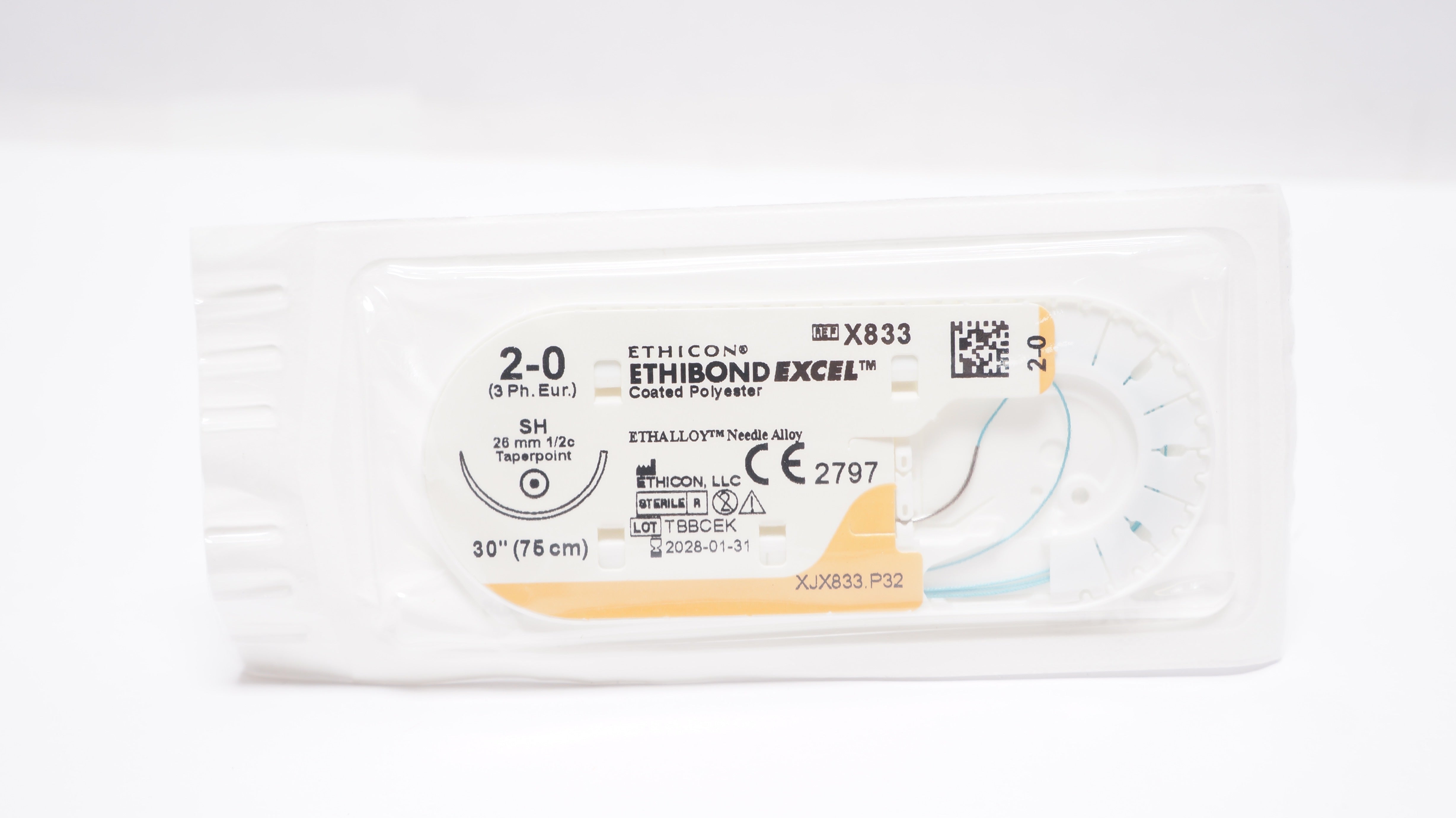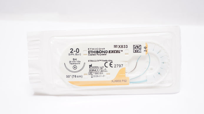 Ethicon X833 2-0 ETHIBOND EXCEL Polyester Stre SH 26mm 1/2c Taperpoint 30inch