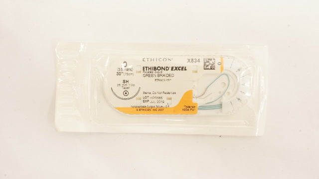 Ethicon X834 0 ETHIBOND EXCEL Polyester Suture Green Braided SH 26mm 1/2c Taper, 30inch