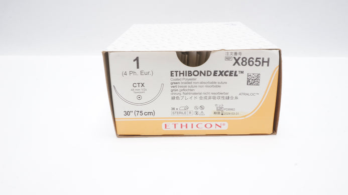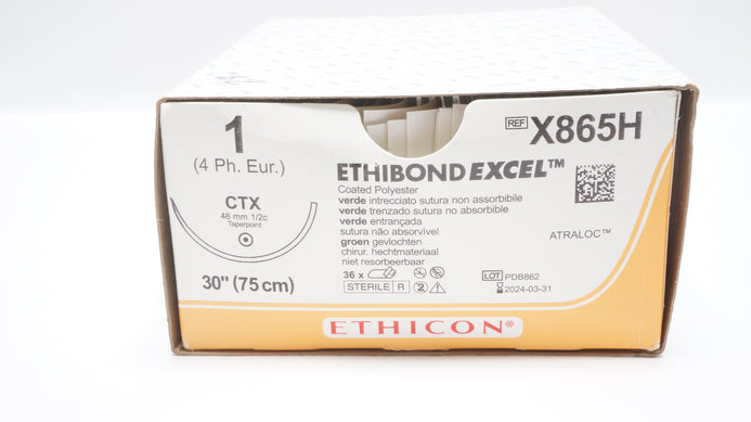 - Ethicon X865H 1 ETHIBOND EXCEL Polyester Stre. 30in., CTX 48mm Ndle(x)-Box of 28