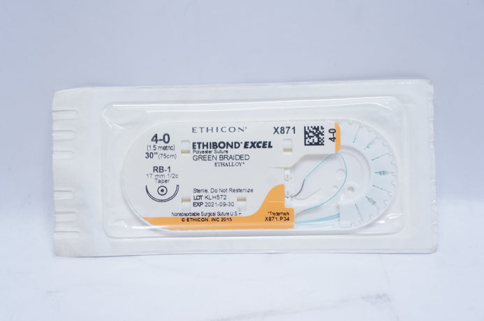 Ethicon X871 4-0 ETHIBOND EXCEL Polyester Stre RB-1, 17mm 1/2c Taper, 30inch (x)