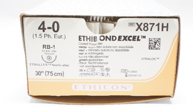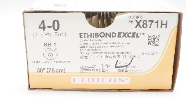 - Ethicon X871H 4-0 ETHIBOND EXCEL, RB-1, 17mm 1/2c Taper, 30inch (x) - Box of 32