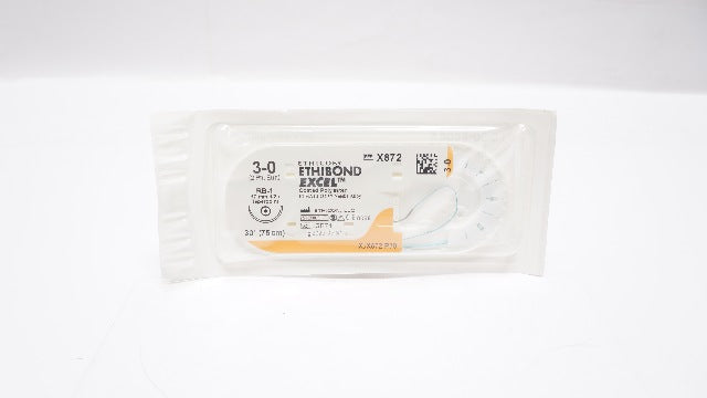 Ethicon X872 3-0 ETHIBOND EXCEL Coated Polyester Suture RB-1, 17mm 1/2c Taperpoint, 30inch