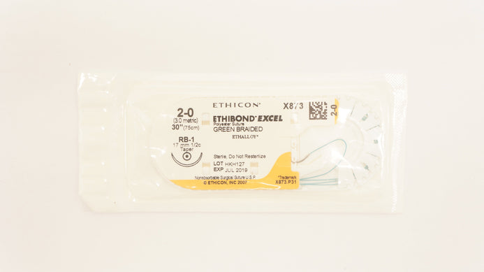 - Ethicon X873 2-0 Ethibond Excel Polyester Stre RB-1 17mm 1/2c Taper, 30inch (x)