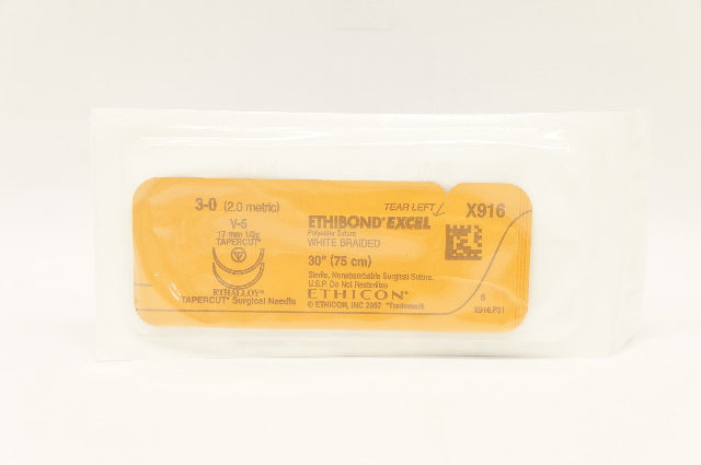- Ethicon X916 3-0 Ethibond Excel Polyester Stre V-5 17mm 1/2c Tapercut,30 inch(x)