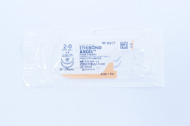 Ethicon X917 2-0 Ethibond Excel Coated Polyester White Braided Non-Absorbable Suture, Tapercut Surgical Needle Ethalloy Needle Alloy V-5 17mm 1/2c Tapercut, 30 inch
