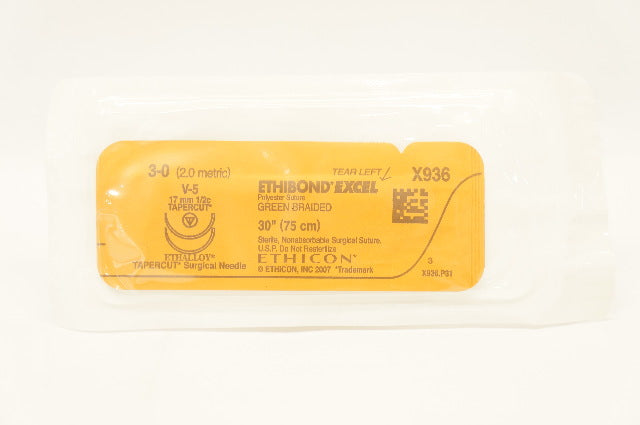 Ethicon X936 3-0 Ethibond Excel, Polyester Stre V-5, 17mm 1/2c Tapercut, 30inch (x)