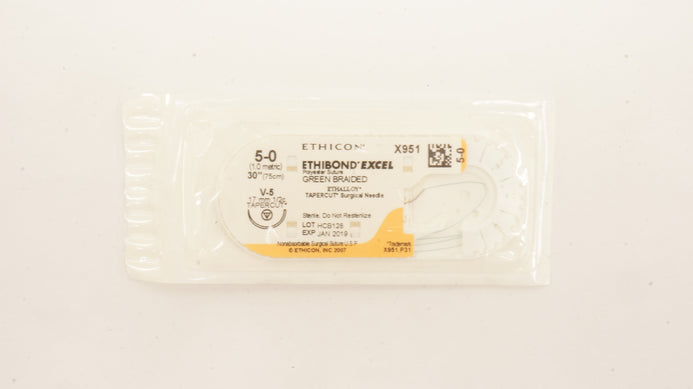 Ethicon X951 5-0 Ethibond Excel Polyester Suture Green Braided V-5 17mm 1/2c Tapercut, 30inch