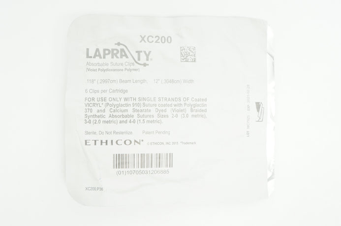 Ethicon XC200 LAPRA TY Absorbable Suture Clips, 12inch x 118inch