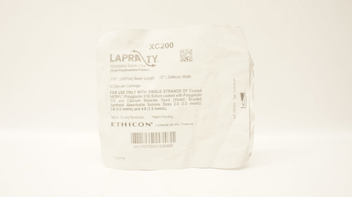 Ethicon XC200 LAPRA TY Absorbable Suture Clips, Beam Length 12inch x 118inch