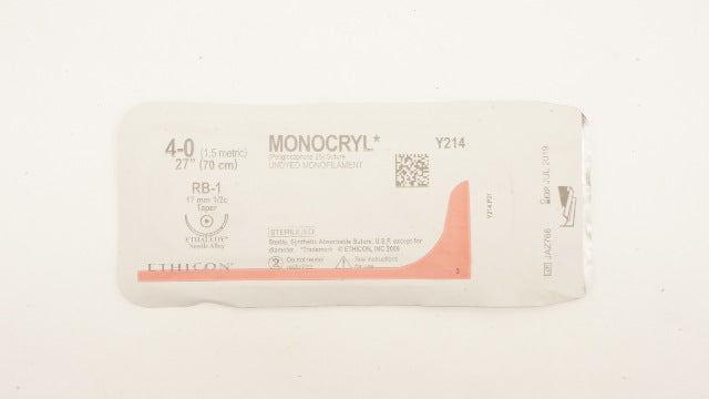 Ethicon Y214 4-0 MONOCRYL Stre RB-1 17mm 1/2c Taper, 27inch (x)