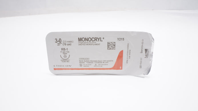 Ethicon Y215 3-0 MONOCRYL Stre RB-1 17mm 1/2c Taper 27 inch (x)