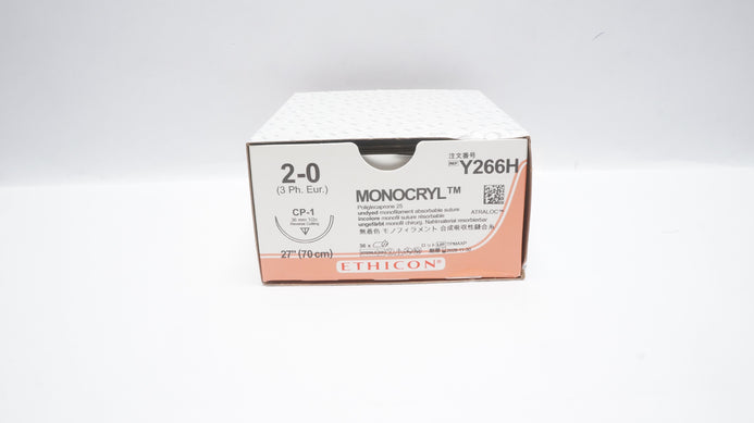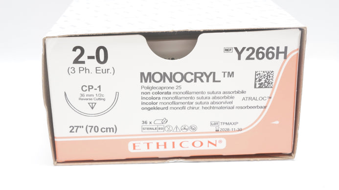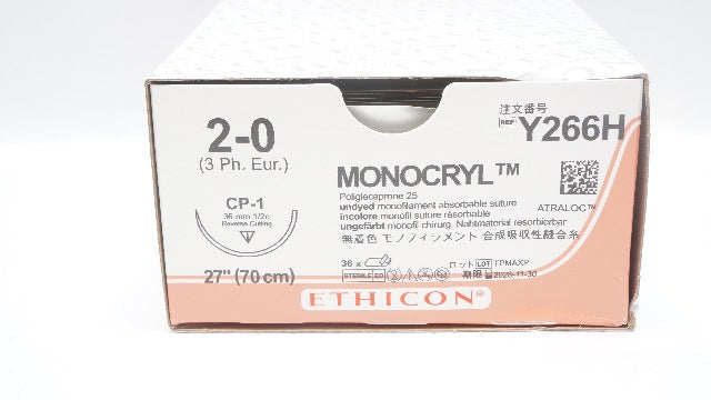 Ethicon Y266H 2-0 Monocryl CP-1 36mm 1/2c Reverse Cutting 27inch - Box of 36