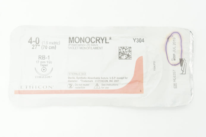 Ethicon Y304 4-0 MONOCRYL Violet Monofilament PB-1 17mm 1/2c Taper, 27inch