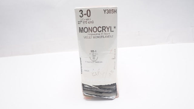 - Ethicon Y305H 3-0 Monocryl Stre RB-1 17mm 1/2c Taper 27inch (x)- Box of 36