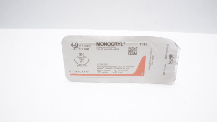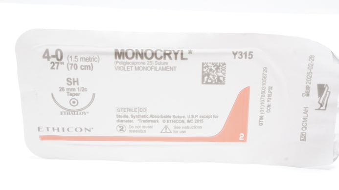 - Ethicon Y315 4-0 MONOCRYL Poliglecaprone 25 Stre SH 26mm 1/2c Taper, 27inch
