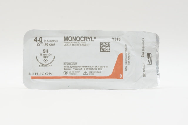 - Ethicon Y315 4-0 MONOCRYL, SH, 26mm 1/2c Taper, 27inch