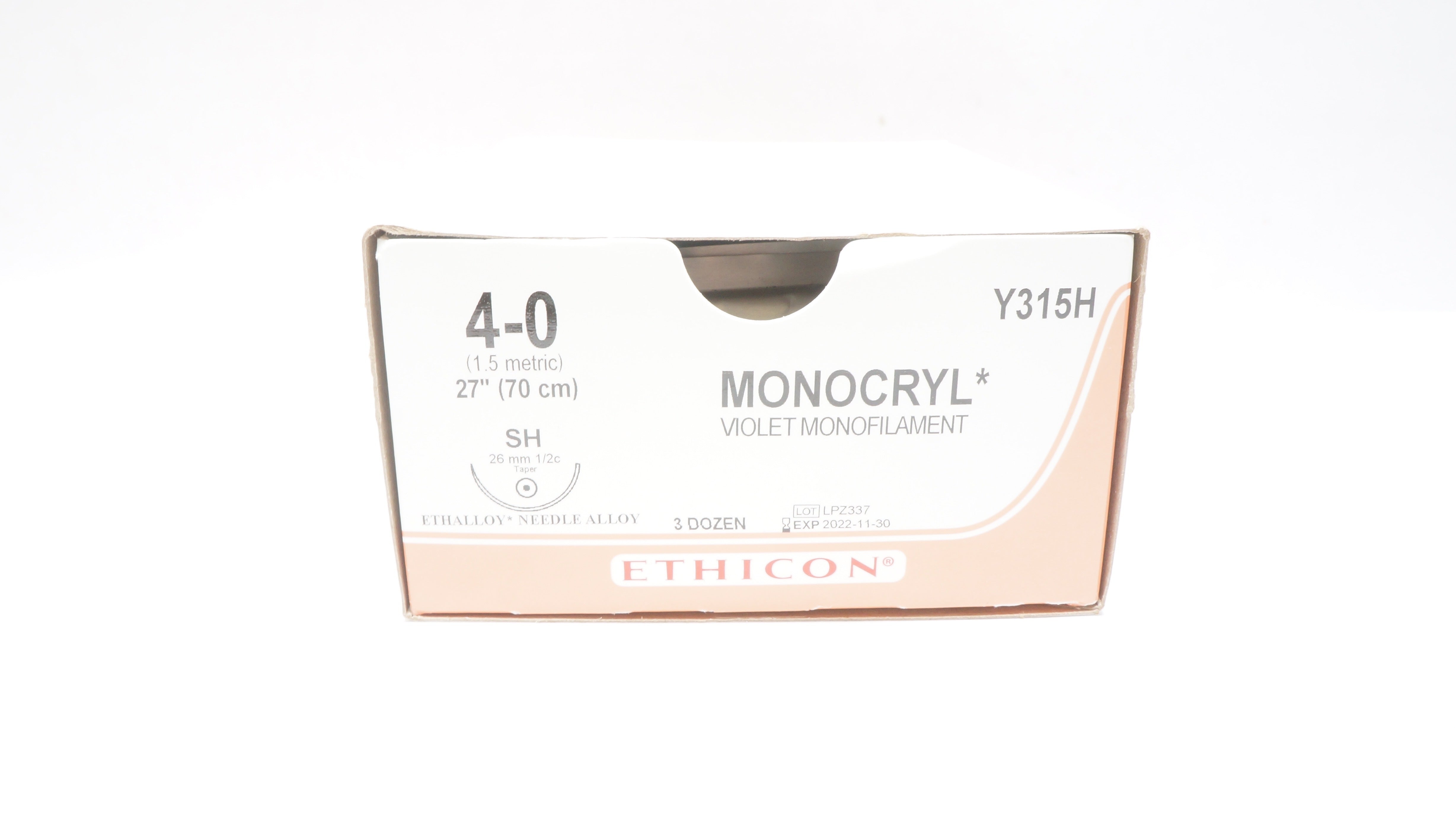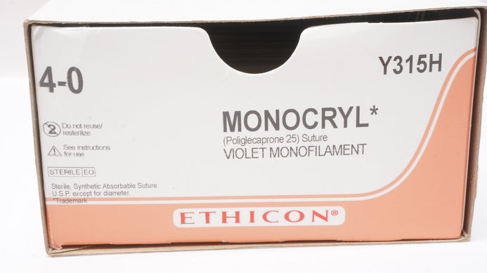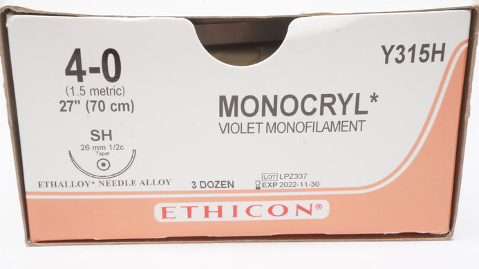 Ethicon Y315H 4-0 MONOCRYL, SH, 26mm 1/2c Taper, 27inch (x) - Box of 26