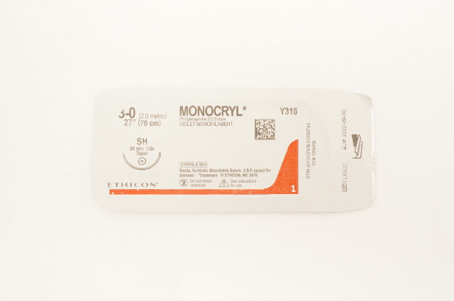 - Ethicon Y316 3-0 MONOCRYL SH 26mm 1/2c Taper 27inch (x)