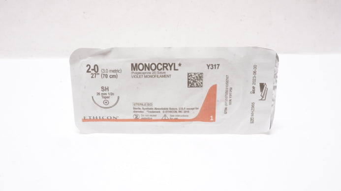 - Ethicon Y317 2-0 MONOCRYL SH 26mm 1/2c Taper 27inch (x)