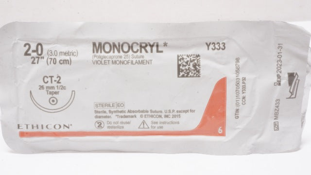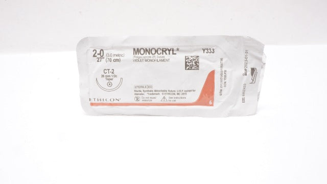 Ethicon Y333 2-0 MONOCRYL Poliglecaprone Stre CT-2 26mm 1/2c Taper 27inch (x)