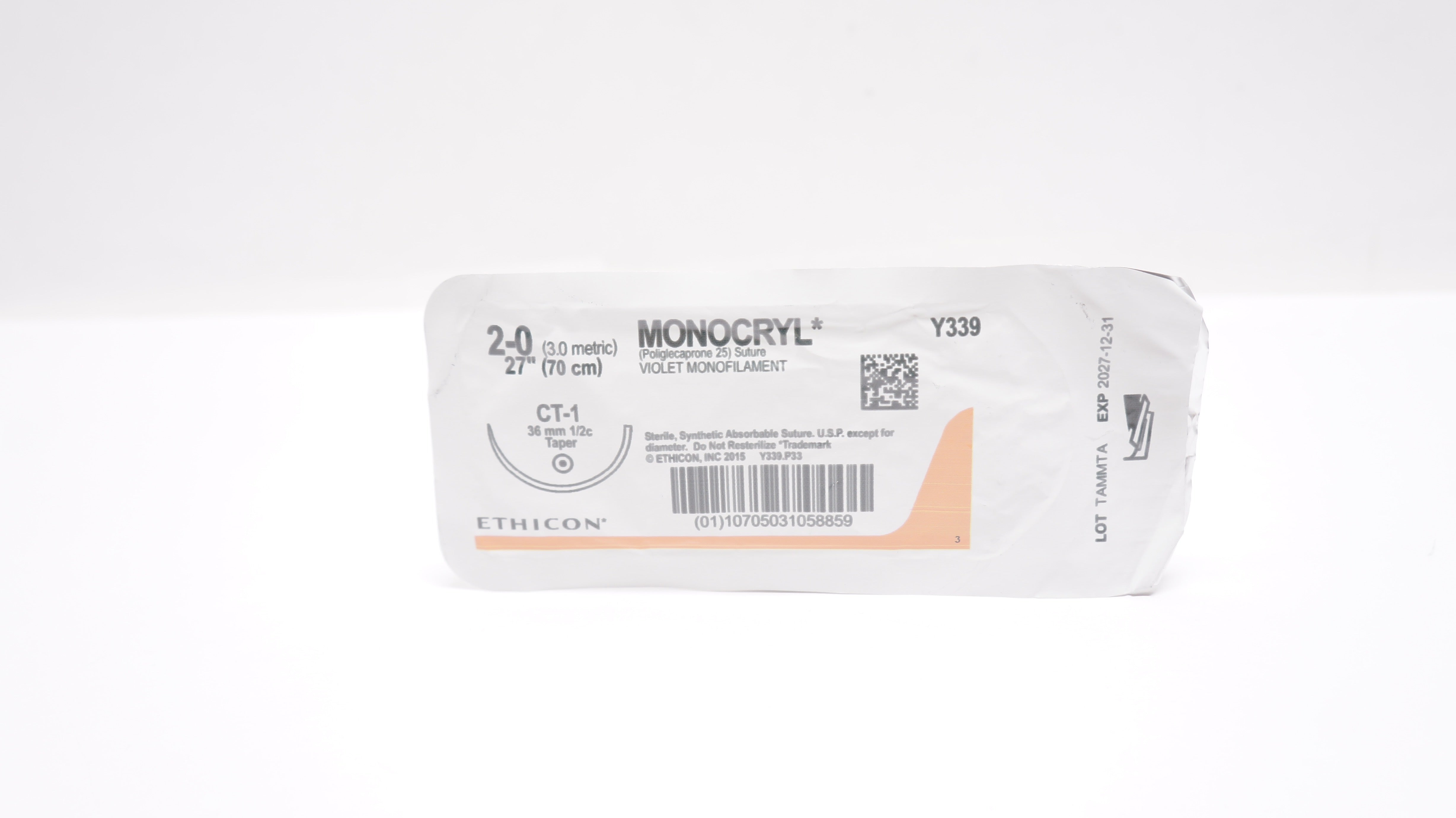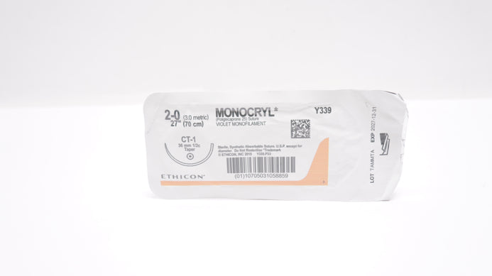 Ethicon Y339 2-0 Monocryl Poliglecaprone 25 Stre CT-1 36mm 1/2c Taper 27 inch
