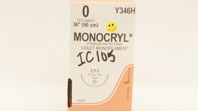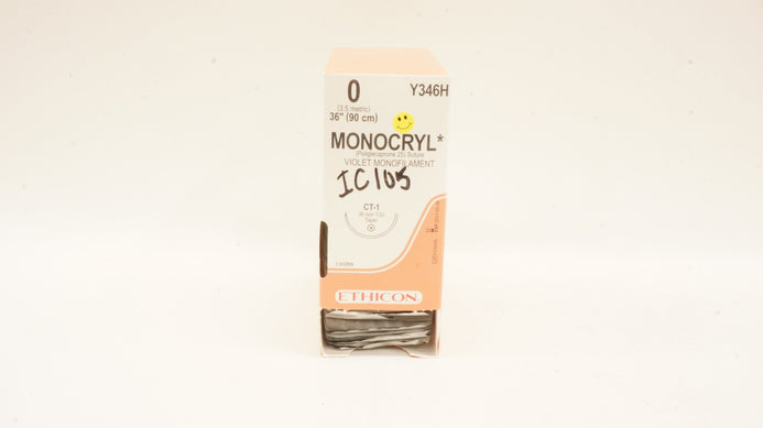Ethicon Y346H 0 Monocryl Stre CT-1 36mm 1/2c Taper, 36 inch (x) - Box of 36
