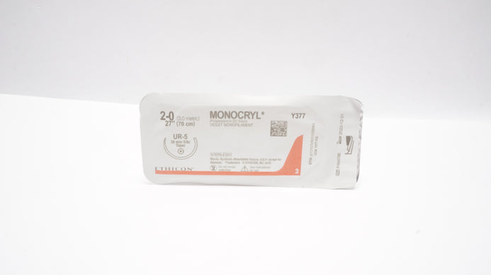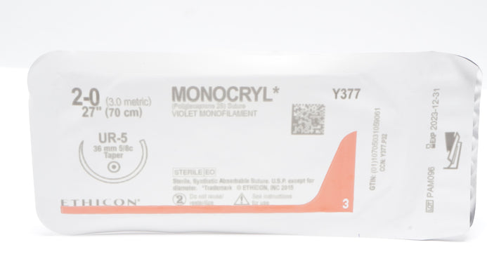Ethicon Y377 2-0 MONOCRYL, UR-5, 36mm 5/8c Taper, 27inch