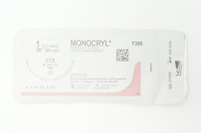 - Ethicon Y399 1 MONOCRYL Violet Monofilament CTX 48mm 1/2c Taper, 36inch (x)