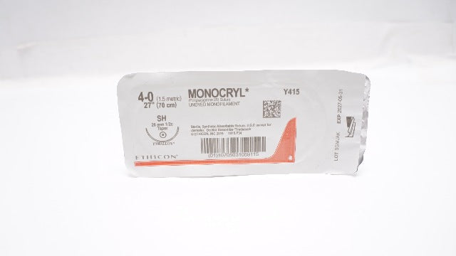 - Ethicon Y415 4-0 MONOCRYL Undyed Monofilament Stre SH 26mm 1/2c Taper, 27inch