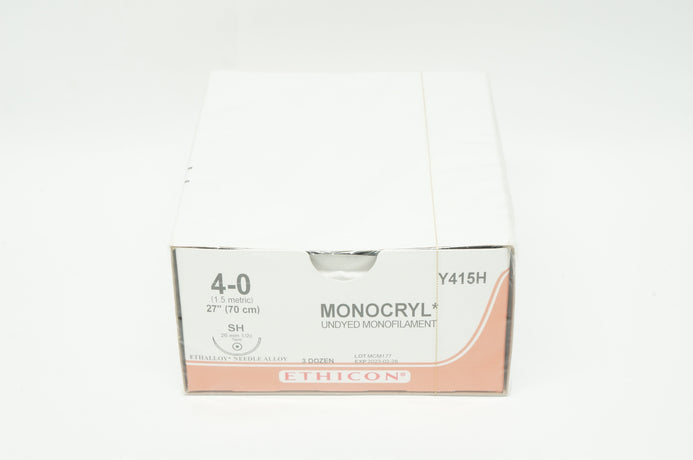 Ethicon Y415H 4-0 MONOCRYL Undyed SH 26mm 1/2c Taper, 27inch - Box of 36