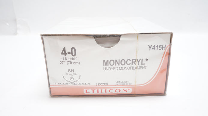 - Ethicon Y415H 4-0 MONOCRYL Undyed SH 26mm 1/2c Taper 27inch - Box of 36 (x)