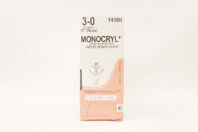 - Ethicon Y416H 3-0 MONOCRYL, SH, 26mm 1/2c Taper, 27inch (x) - Box of 36