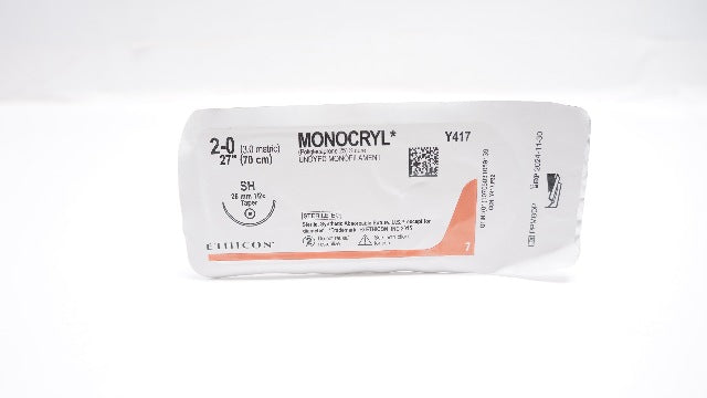 - Ethicon Y417 2-0 Monocryl Poliglecaprone 25 Stre SH 26mm 1/2c Taper 27inch (x)