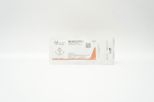 - Ethicon Y417 2-0 MONOCRYL Undyed Monofilament SH 26mm 1/2c Taper, 27inch (x)