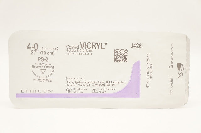 Ethicon Y426 4-0 Coated Vicryl Stre Undyed Braided PS-2 19mm 3/8c 27inch